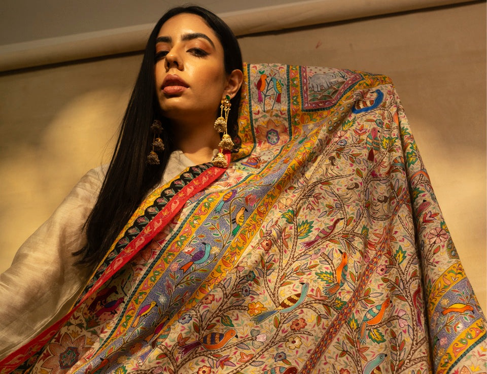 Our collection, which includes shawls, scarves, pocket square jackets, throws, and bedcovers, is a celebration of the finest materials and intricate techniques.This fusion of the old and new allows us to offer products that are not just fashionable but also rich in cultural heritage.